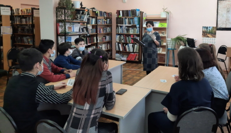 Библиотекарь С.Ш. Агафурова рассказала присутствующим о тяжелых днях войны о людях, которые жили в блокадном Ленинграде, о записях в дневнике ленинградской школьницы Тани Савичевой, ее семье и жизни до войны, о том, как постепенно девочка теряла близких и осталась одна во время блокады.