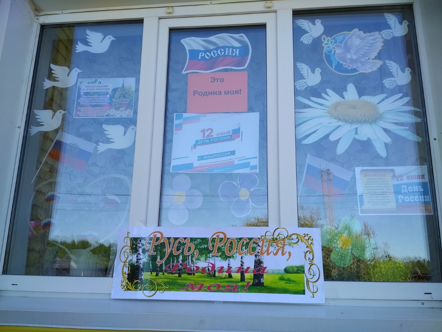 Красиво были украшены окна домов и библиотек российскими флагами, надписями «С днем России!» и «Россия – это мы!», изображениями голубей, цветов, сердец. Это было наше участие в акции «Окна России».