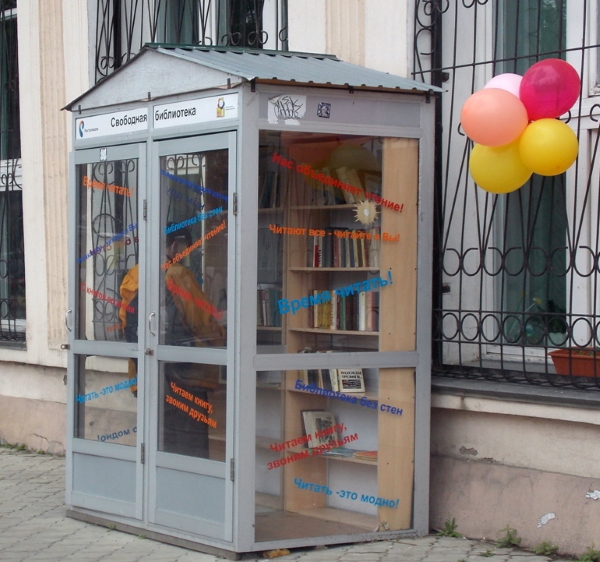 21 декабря 2012 года в Иркутске открылась первая в России книжная телефонная будка «Свободная библиотека» возле здания Областной детской библиотеки им. Марка Сергеева на улице Свердлова, д. 23.